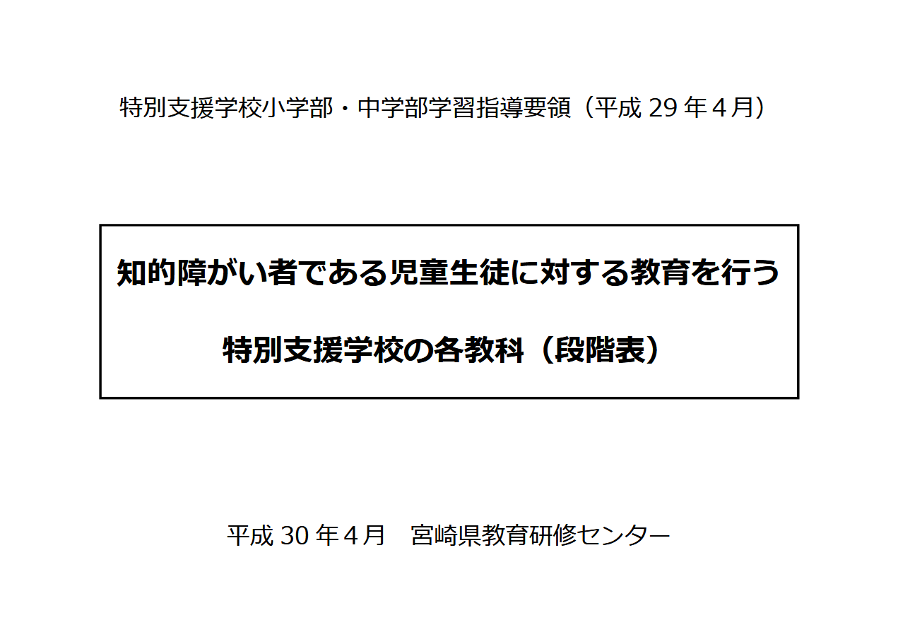 知的障がい特別支援学校の各教科【段階表】(平成30年4月)を掲載しました。(旧ページからの転載)
